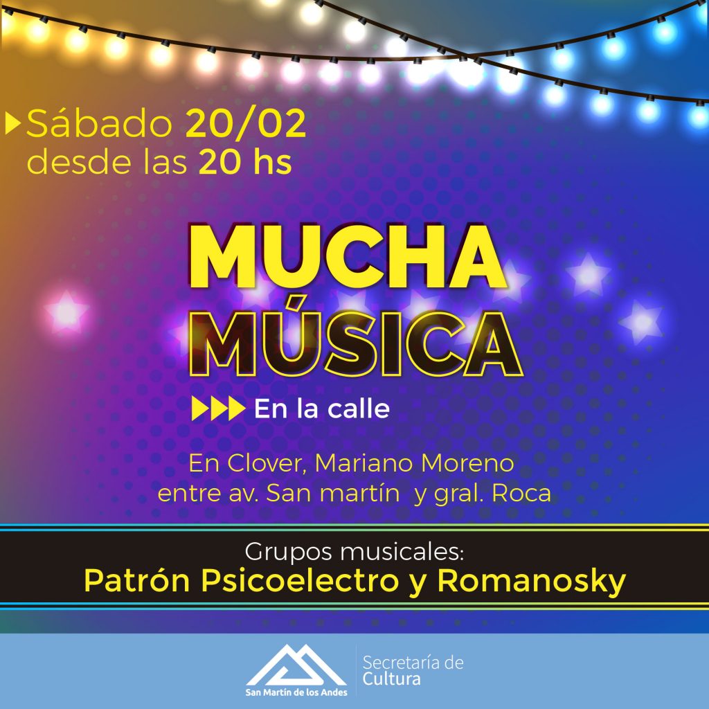 El próximo sábado 20 de febrero, en el marco del programa Mucha Música en la calle, se podrá disfrutar de las presentaciones en vivo de dos bandas locales: Romanosky y Patrón Psicoelectro. Será desde las 20hs en el parque cerrado que se armará sobre la calle Mariano Moreno, frente a Clover.