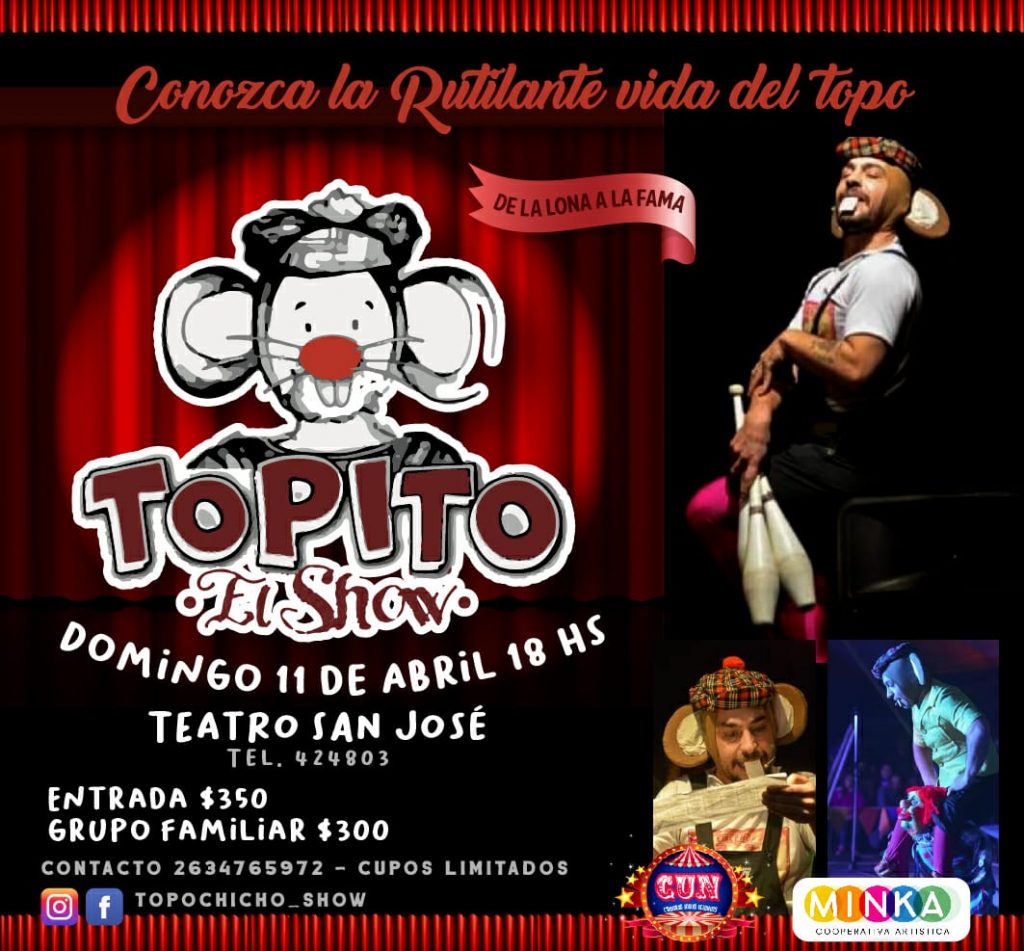 Este domingo 11 de abril a las 18hs llega “Topito el Show” al teatro San José.