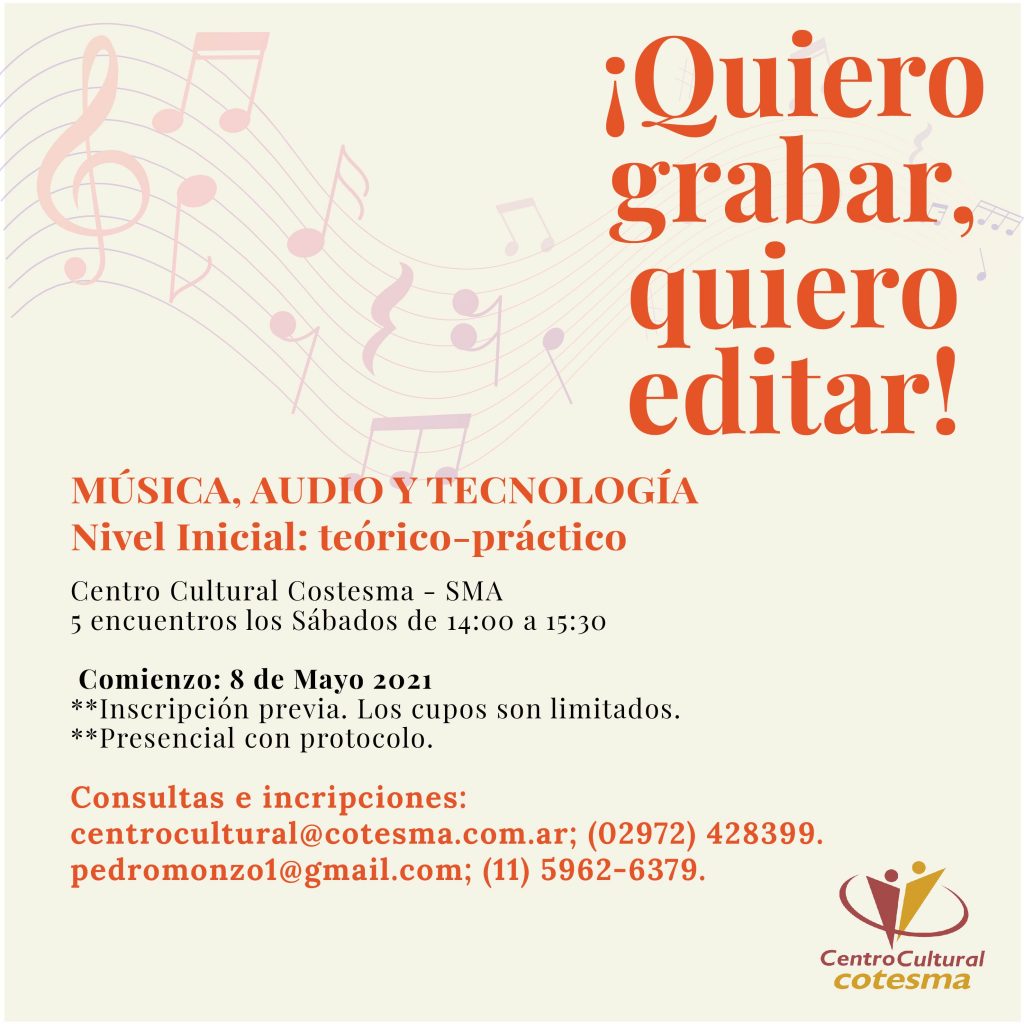 En Mayo, nuestra grilla de talleres suma una imperdible propuesta, también relacionada al mundo de la música: Pedro Liberalia presenta “QUIERO GRABAR, QUIERO EDITAR”, taller de Música, Audio y Tecnología.