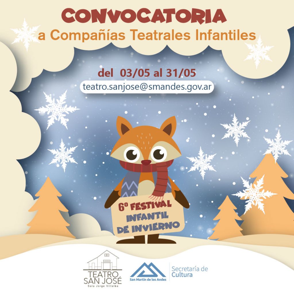 La Secretaria de Cultura convoca a artistas y compañías a presentar propuestas de espectáculos infantiles para el 6to festival infantil de invierno, un ciclo de presentaciones destinadas a chicos y chicas de la localidad a realizarse durante las vacaciones de invierno en el mes de julio de 2021.