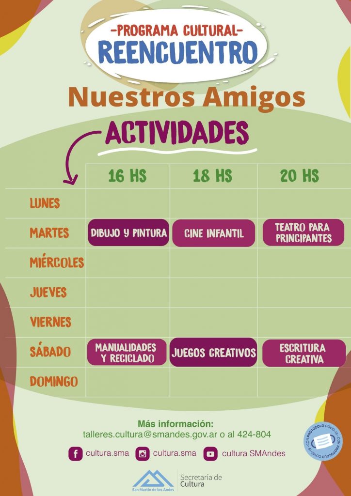 Cine infantil: martes a las 18 hs. Destinado a niños/as de 6 a 10 años y coordinado por la artista visual Analía Alvarez, la actividad tiene como objetivos acercar a los participantes al cine y a la construcción de narrativas desde el juego y la imaginación de forma grupal.