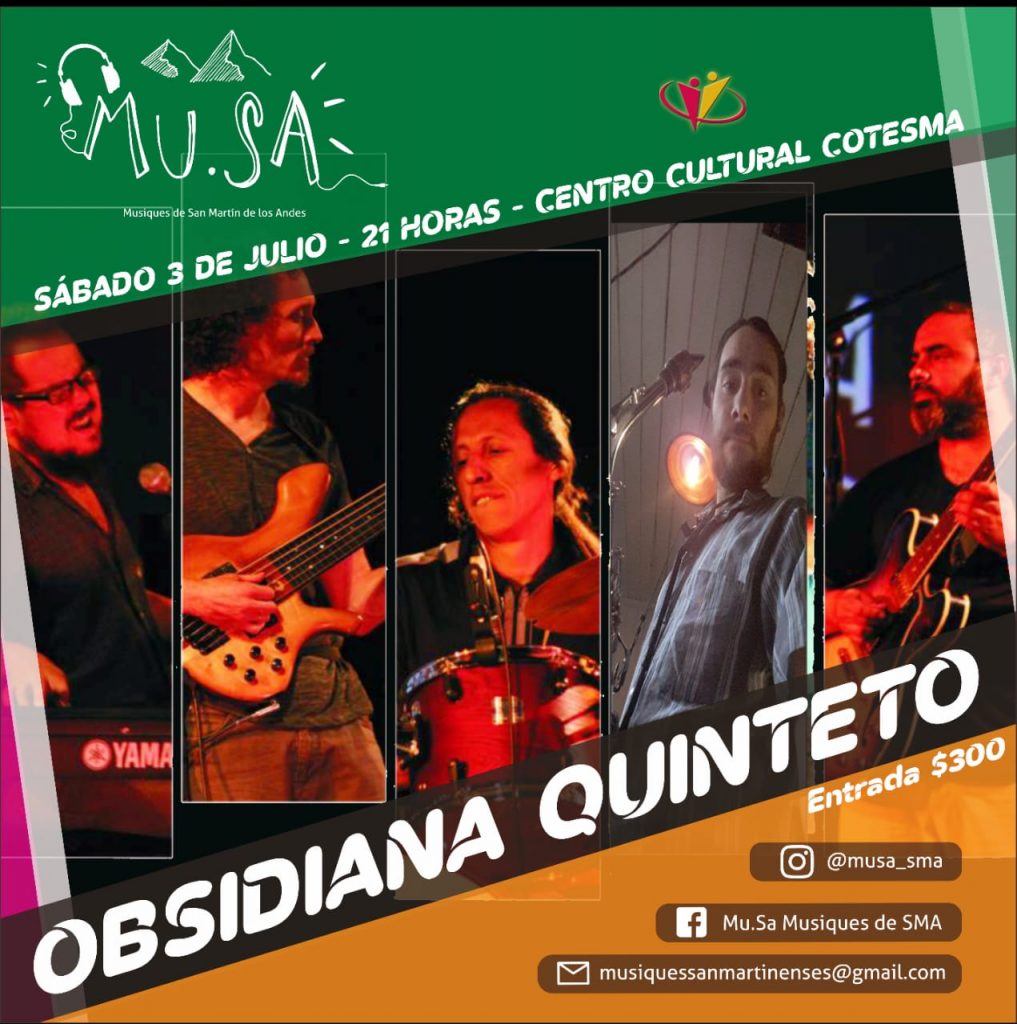 Obsidiana quinteto nace en el año 2014 en San Martín de los Andes, con influencias del jazz, música rioplatense, y ritmos del sur de Brasil.