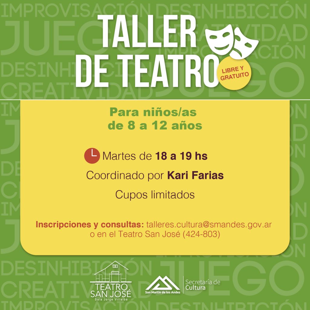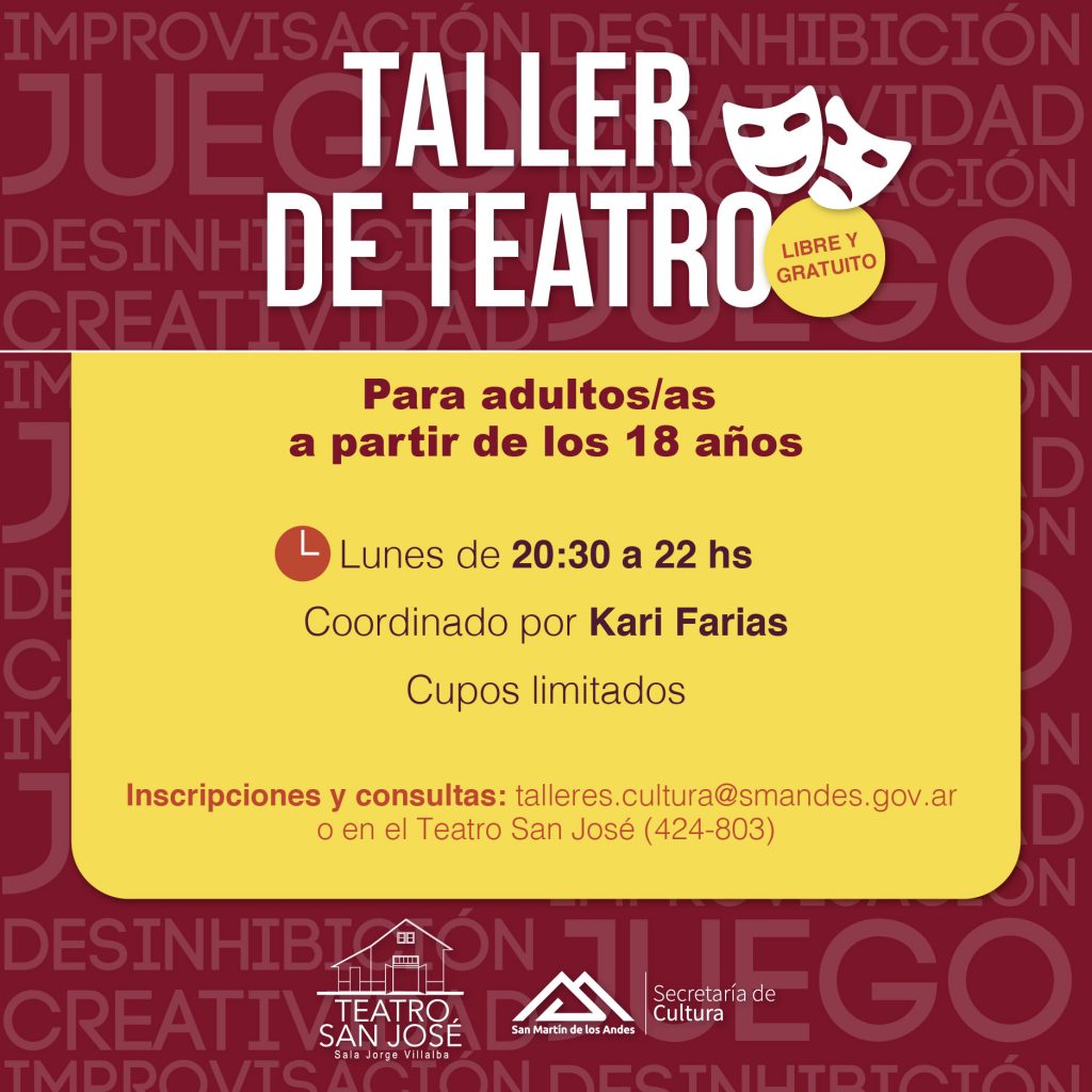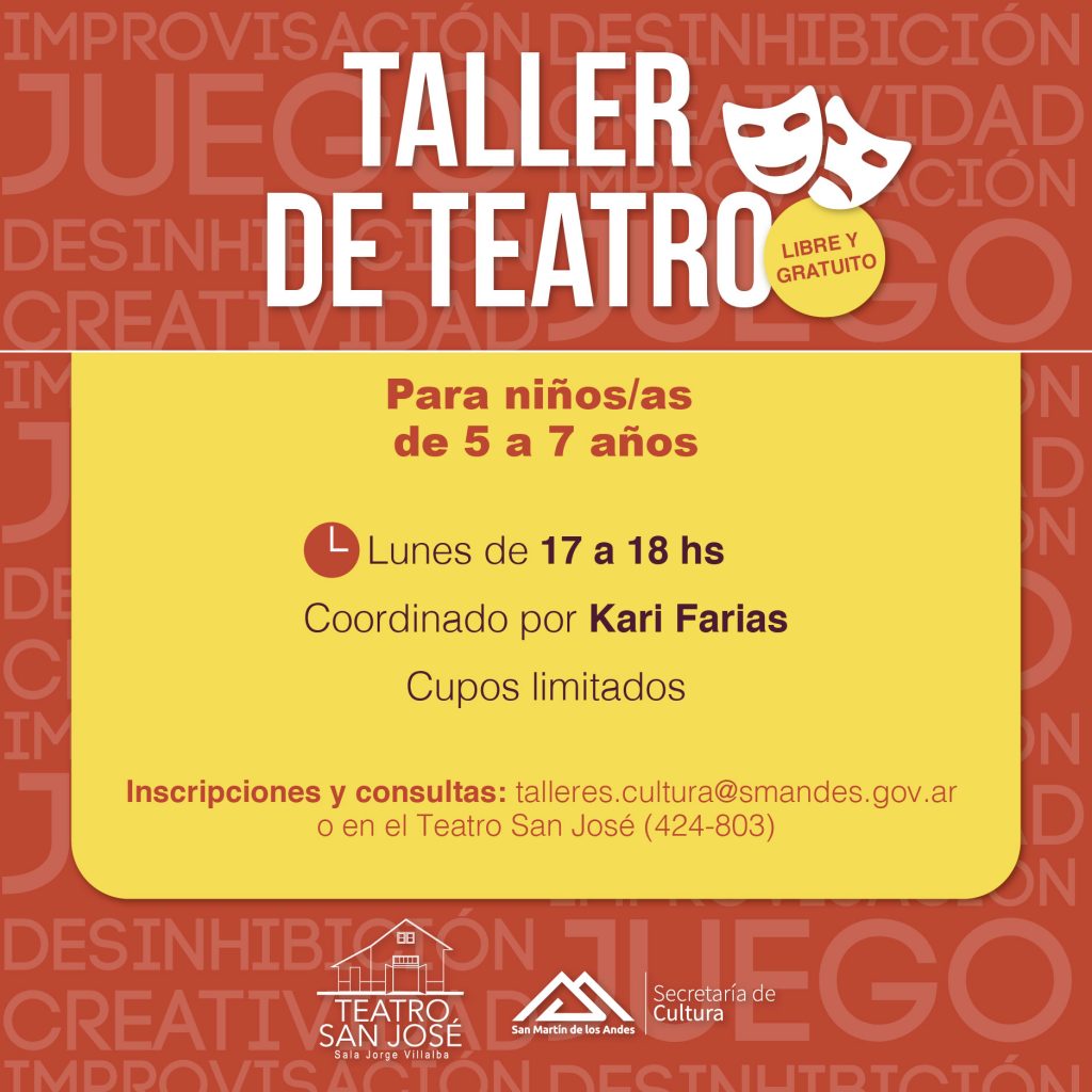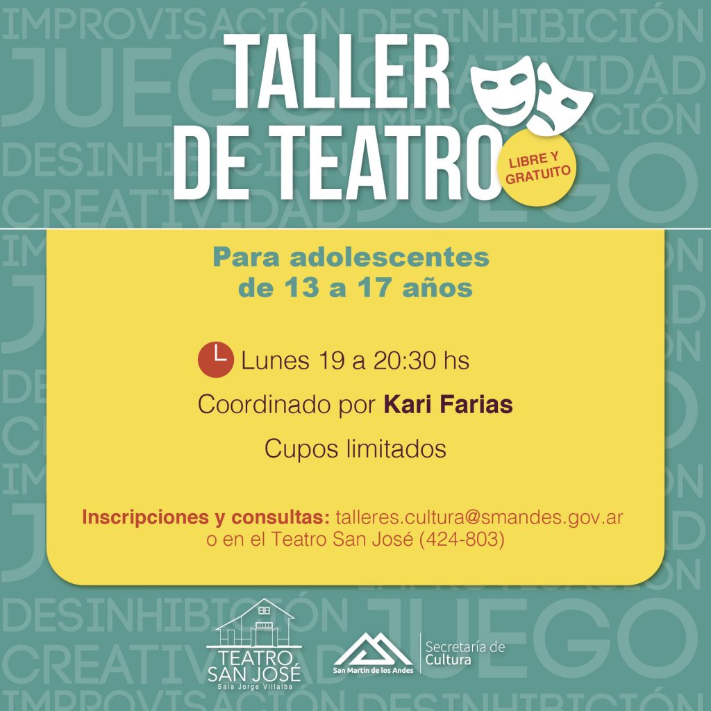 Para inscripciones y consultas escribir a talleres.cultura@smandes.gov.ar o llamar al Teatro San José (424-803).