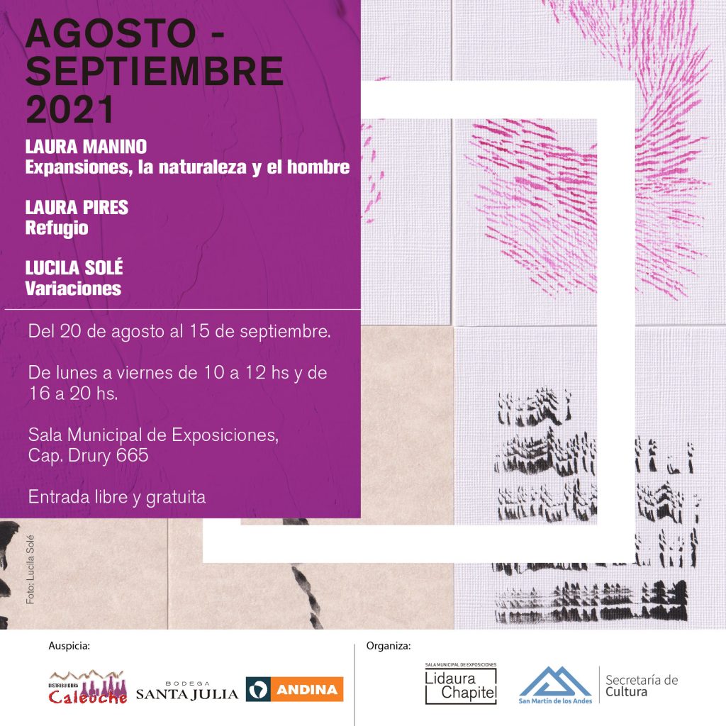 El próximo 20 de agosto abre una nueva exposición en la Sala Municipal Lidaura Chapitel, que estará disponible al público hasta el 15 de septiembre. La misma reune obras de tres artístas y podrá ser visitada de lunes a viernes de 10 a 12hs y de 16 a 20hs. La entrada es libre y gratuita, cumpliendo con el protocolo sanitario.
