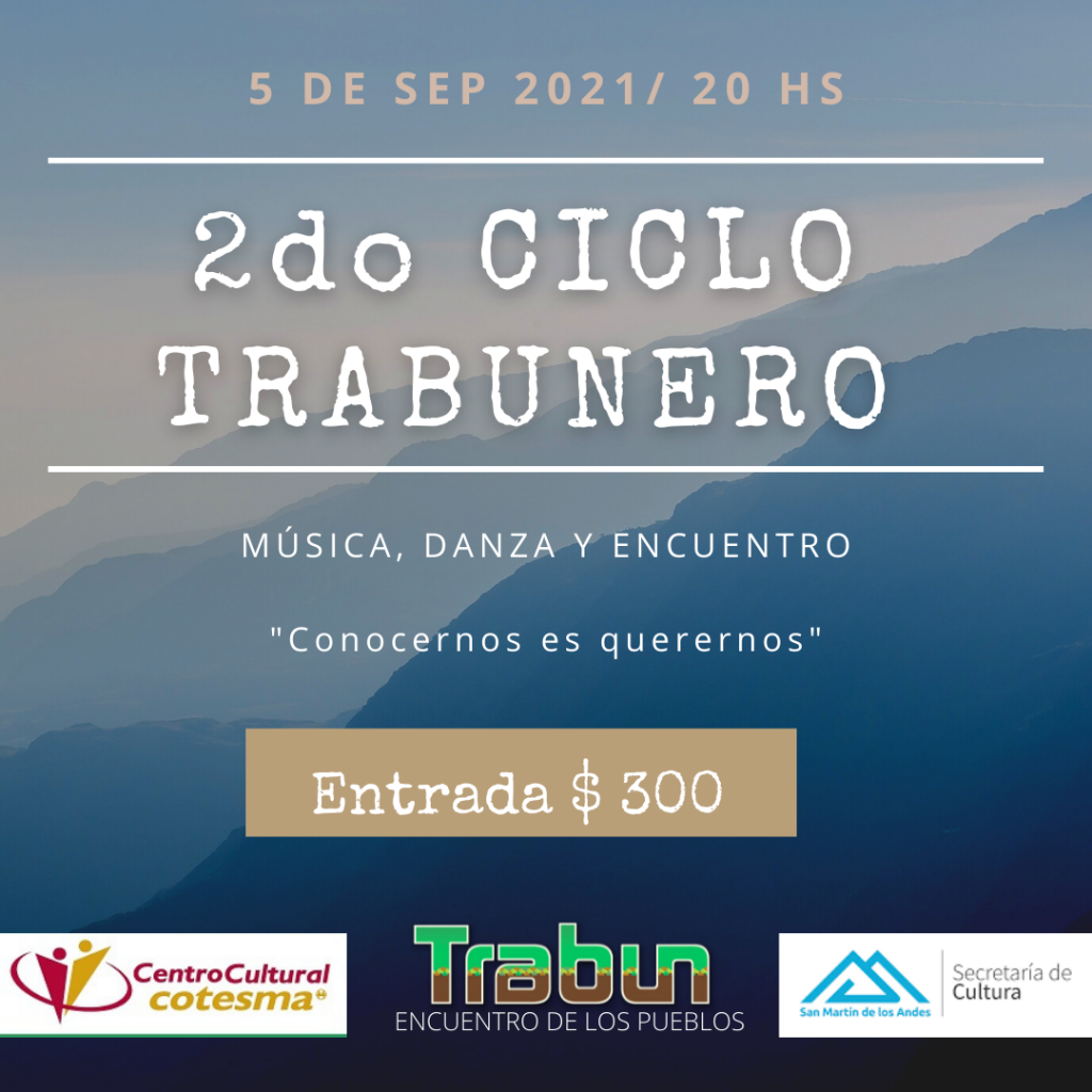 Desde la actual comisión del Trabun y en trabajo conjunto con la secretaría de cultura dela ciudad, tenemos el agrado de invitarlos al segundo ciclo trabunero del año. Esta iniciativa, es llevada a cabo para continuar recaudando fondos para fin de año y que se pueda realizar esta hermosa fiesta del pueblo de San Martín de los Andes.