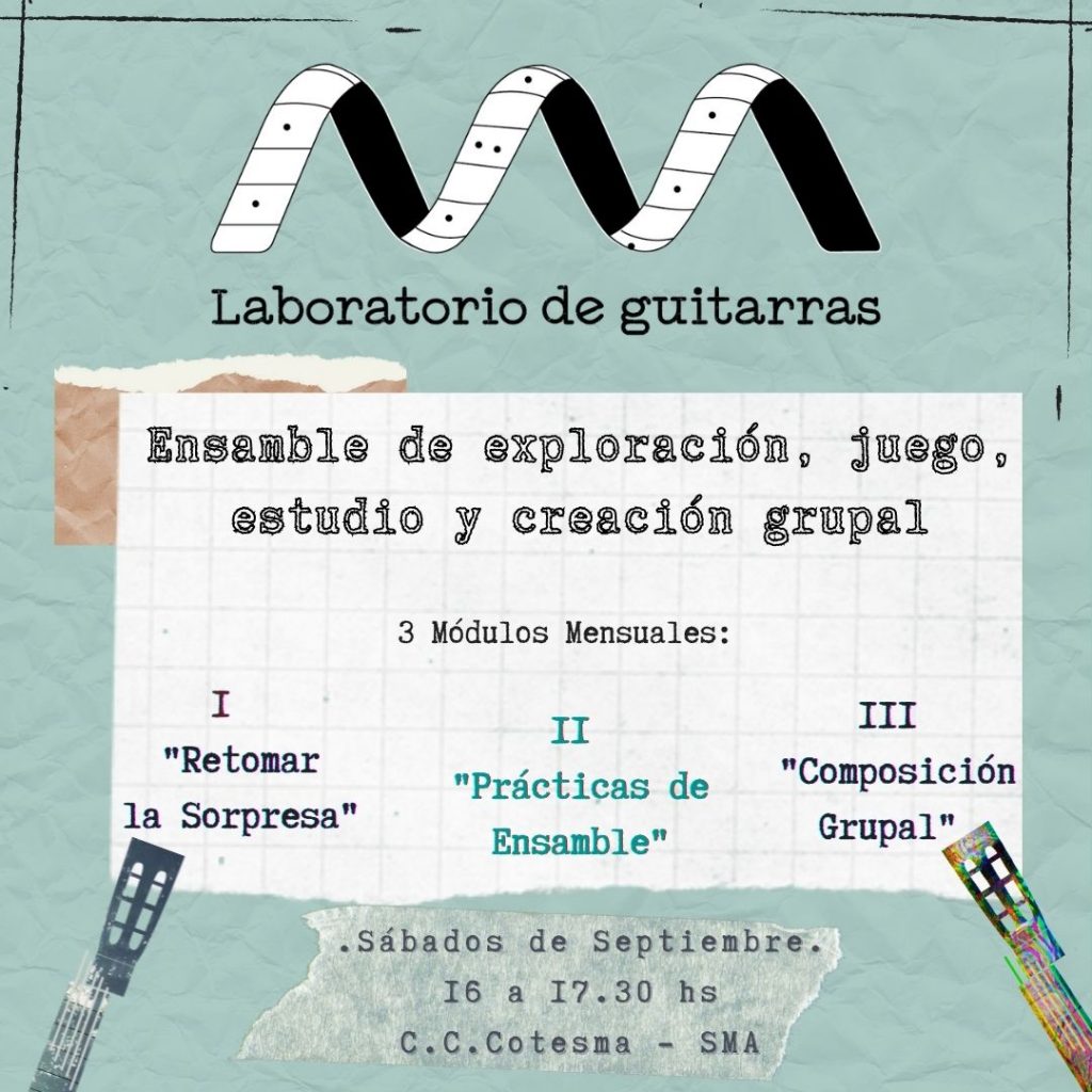 El músico Matias Gabarrot presenta “LABORATORIO DE GUITARRAS”, un proyecto que funciona como grupo de estudio, espacio de experimentación y taller de composición al mismo tiempo. Bajo una dirección que más tiene que ver con proponer consignas de juego que dar indicaciones, se recrean dinámicas grupales y se brinda material específico para cada grupo, que, dependiendo su confección y avance, también, se realizan convocatorias a otros instrumentos de cuerda como bajo, cello, cuatro, violín, etc.