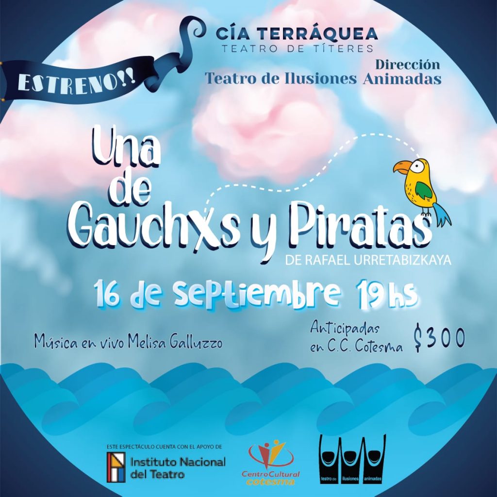El próximo jueves, 16 de septiembre a las 19hs en la Sala Amankay, volvemos a recibir los títeres del Grupo Terráquea. Escrita por Rafa Urretabizkaya llega “UNA DE GAUCHXS Y PIRATAS”.