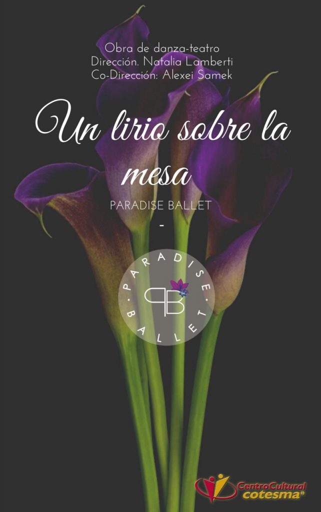 Esta vez, la compañía de danza contemporánea nos deleitará con una nueva creación: “UN LIRIO SOBRE LA MESA”, una obra dramática en la cual podremos observar el comportamiento y desarrollo de distintos personajes a lo largo de la historia.