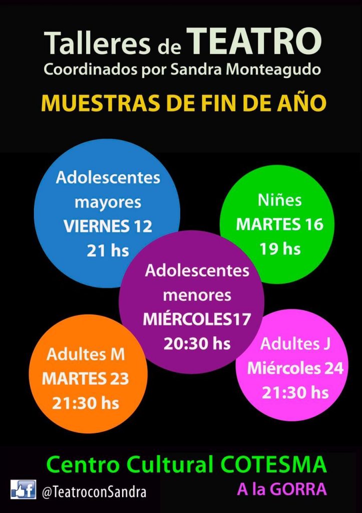 Este viernes, 12 de noviembre a las 21hs, llega la primera de las cinco Muestras de los Talleres de Teatro dictados por Sandra Monteagudo en nuestro querido Centro Cultural.