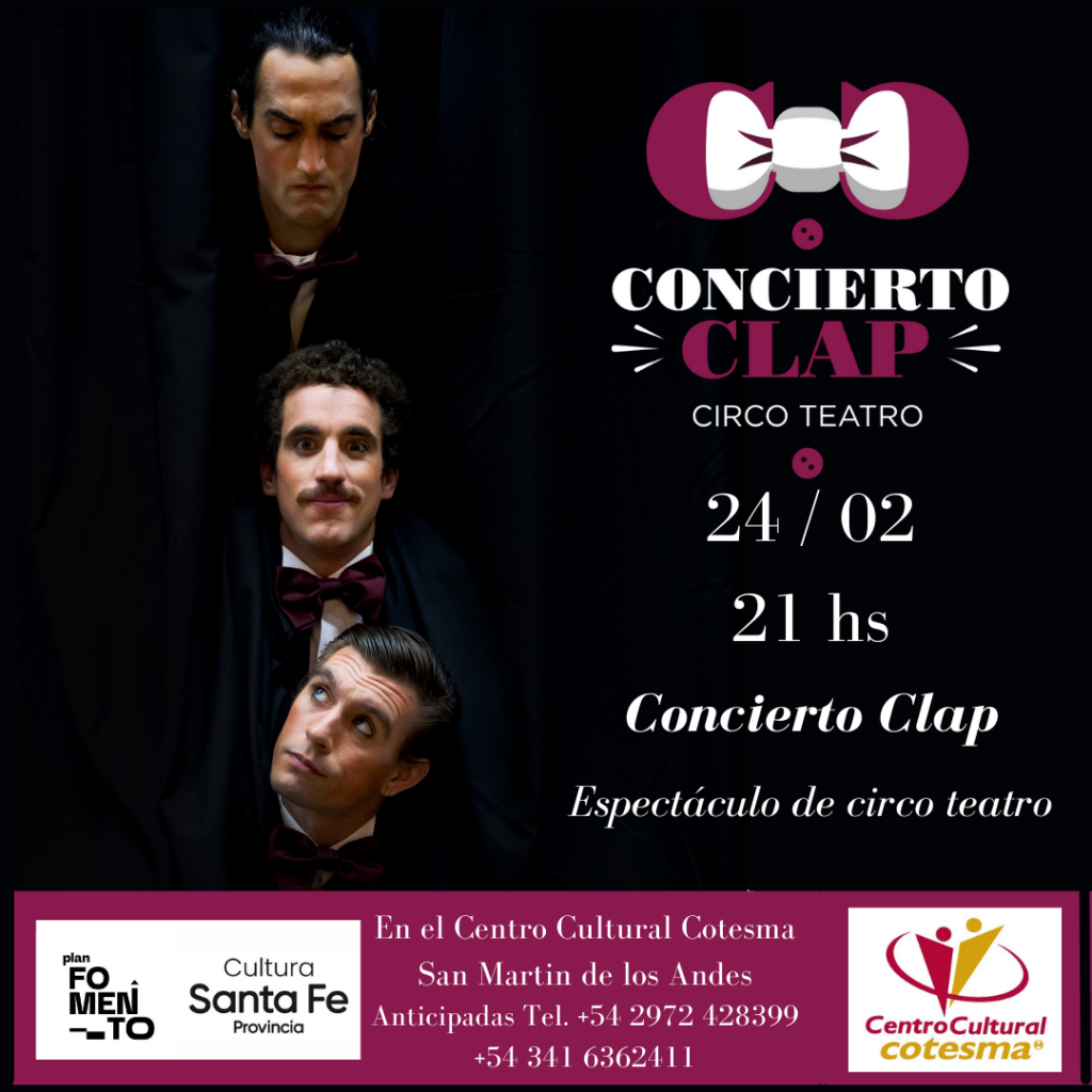 “Concierto Clap” es un espectáculo de circo-teatro, que combina la percusion corporal y las destrezas acrobáticas a través de la comedia. Una obra que prescinde de la palabra, potencia la expresividad de los cuerpos y logra así un producto de entendimiento universal y de carácter popular.