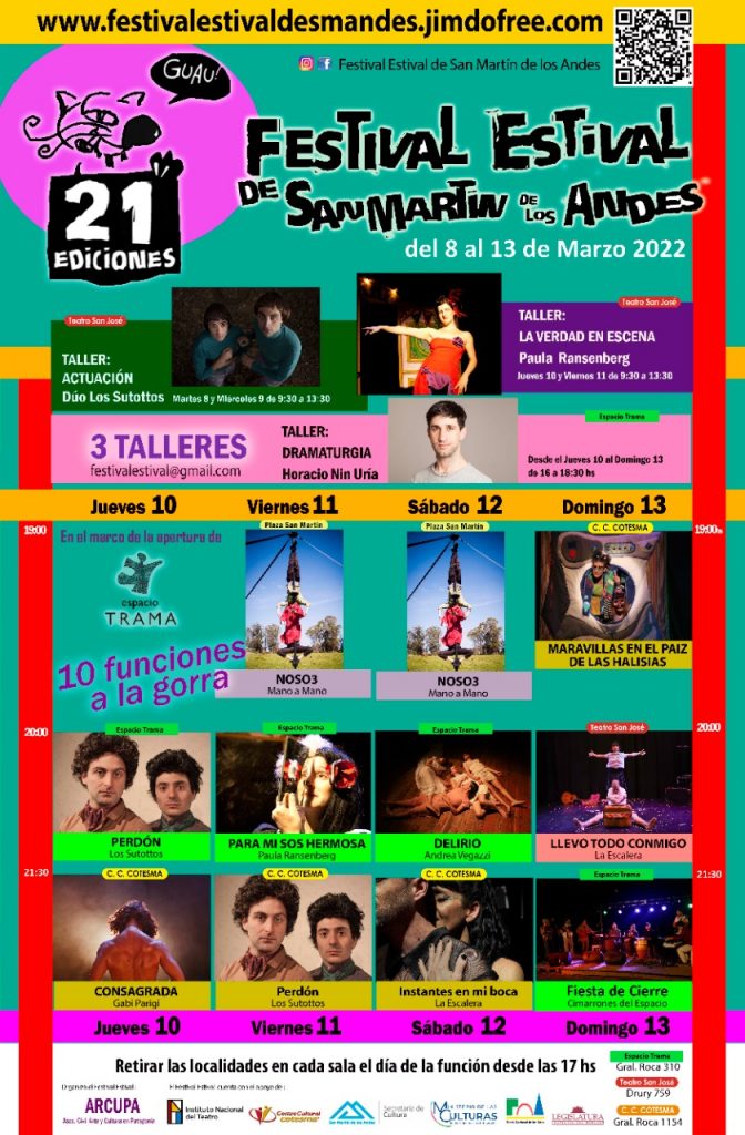 La Edición N°21 del Festival Estival de Teatro de San Martín de los Andes está llegando y, como todos los años, en la Sala Amankay vamos a disfrutar imperdibles obras a la gorra. Este evento es llevado a adelante por ARCUPA , con el acompañamiento de la Secretaría de Cultura de San Martín de los Andes.