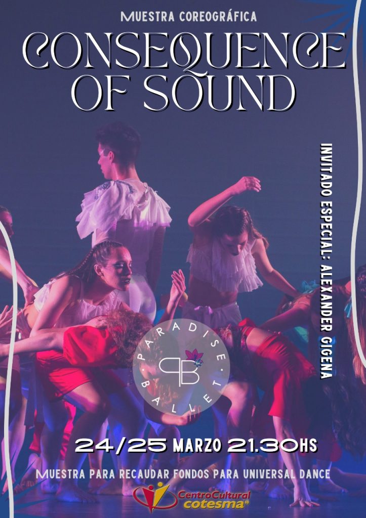 El próximo jueves 24 y viernes 25 de marzo a las 21:30hs en nuestra querida Sala Amankay, la compañía Paradise Ballet presenta su imperdible muestra coreográfica “CONSECUENCE OF SOUND”.