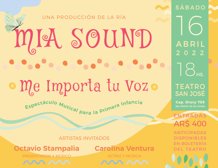 “Este espectáculo musical está dirigido a la primera infancia pero la invitación es para toda la familia, pues se trata de una propuesta sumamente rica en ritmos musicales que nos llevarán de viaje por diversas culturas. Con mucha alegría y colorido, el público más pequeño será invitado a zambullirse en el universo de Mia con canciones cortas y divertidas que acompañan a descubrir partes del cuerpo y también a jugar en ronda. El relato sobre la tradición de una tribu africana llevará a Mia a compartir su experiencia de conexión con sus hij@s a través de la música y de su mano la invitación será a que madres, padres, tías, tíos, abuelas, abuelos conecten con la esencia de sus hij@s, y así también con su propia infancia. Los temas musicales de Mia están afinados en frecuencias sustentables que propician procesos de transformación emocional/mental y conexión con el aquí y el ahora. Como esa tribu, atesoraremos estos momentos compartidos de cantar, bailar, movernos o simplemente disfrutar de la música junto a nuestras infancias”.