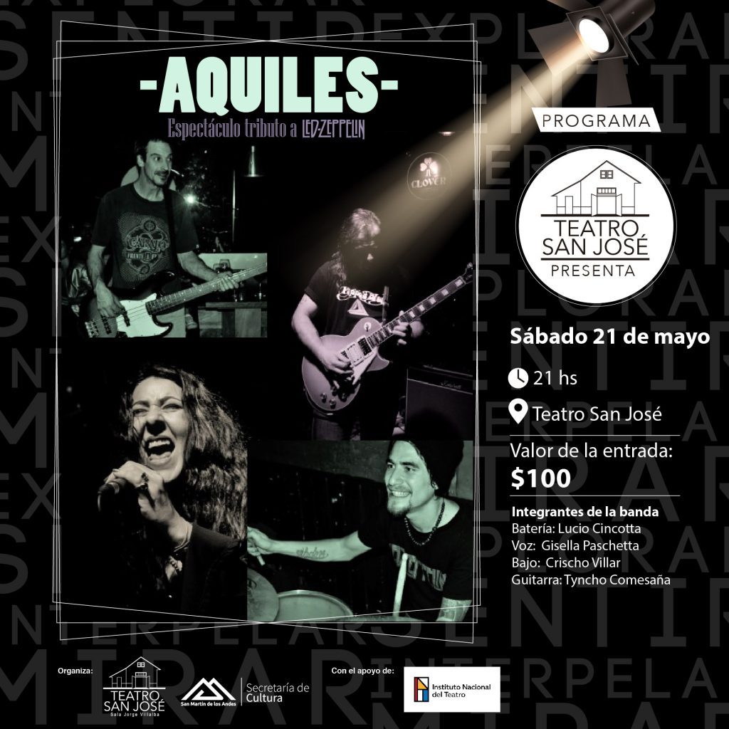 El sábado 21 de mayo, a las 21 hs, Aquiles se presenta en el Teatro San José, repasando dieciséis clásicos de Led Zeppelin de todos sus discos, como por ejemplo “Perro negro”, “Un montón de amor”, “Escalera al cielo”,