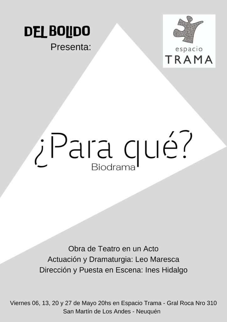 Viernes 13 de Mayo a las 20 hs TEATRO DOCUMENTAL obra ¿PARA QUÉ?