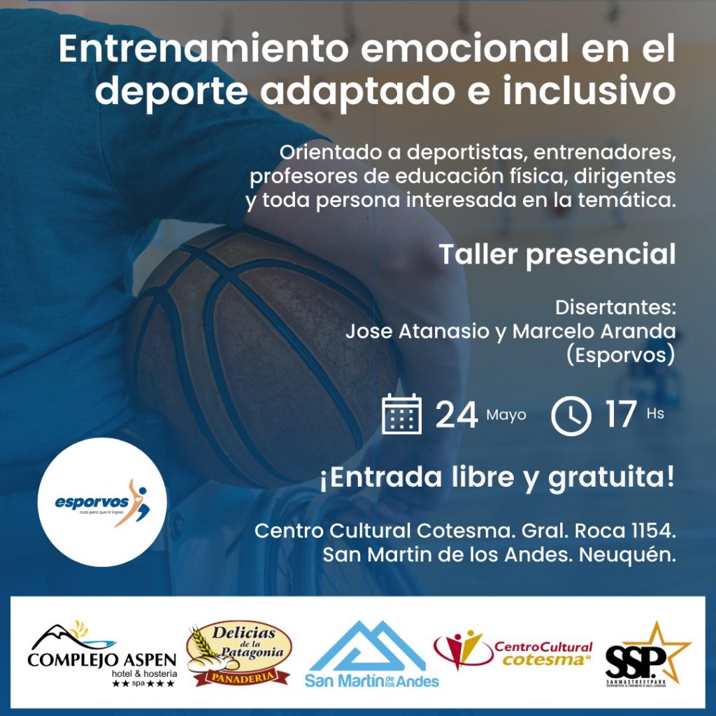 El próximo martes, 24 de mayo, a las 17hs, en la Sala Amankay del Centro Cultural Cotesma, compartiremos una charla capacitación sobre “ENTRENAMIENTO EMOCIONAL EN EL DEPORTE ADAPTADO E INCLUSIVO”.