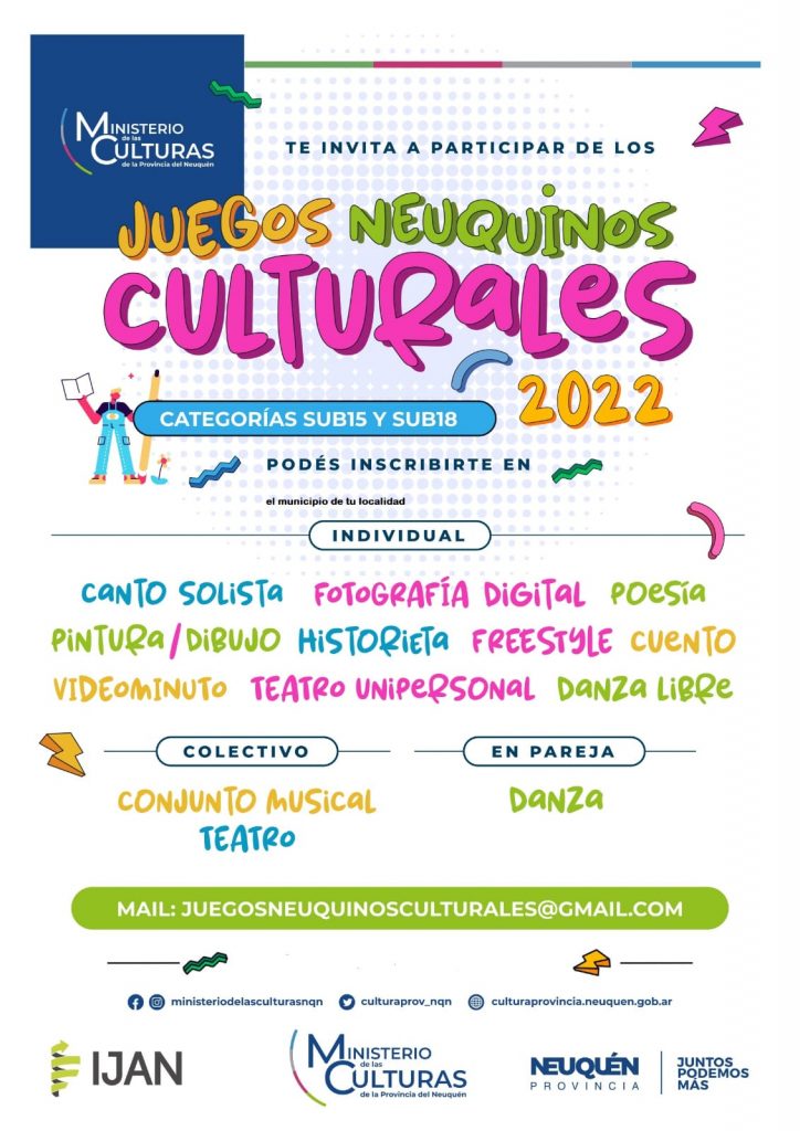 Los Juegos Neuquinos Culturales, se destinan a jóvenes de entre 12 a 18 años de toda la provincia, organizados en las siguientes categorías: