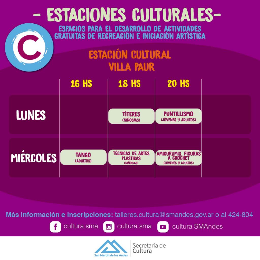 Para saber más de cada taller, clickea en el nombre de cada Estación Cultural