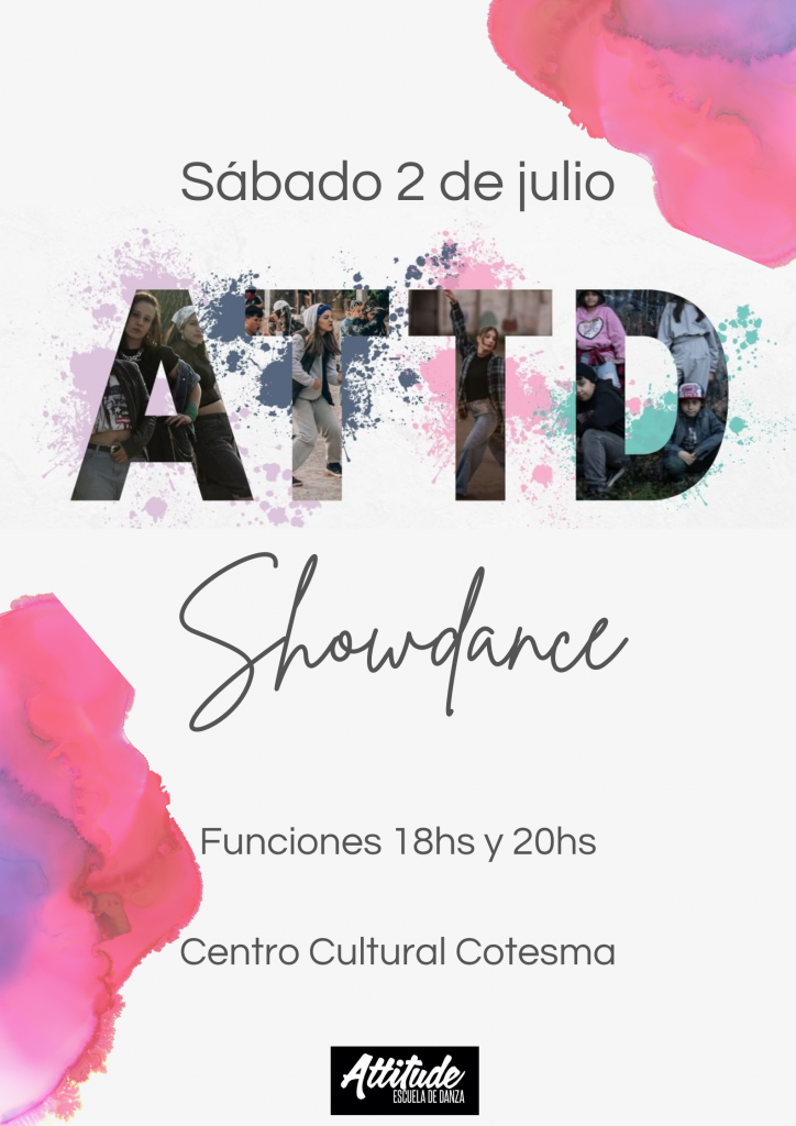 El próximo domingo, 03 de julio, a las 18hs y a las 20hs, en la Sala Amankay, la Escuela de Danza “Attitude” realizará la presentación del SHOWDANCE de mitad de año, donde todos los grupos de Jazz Fusión Teens, Princi, intermedio y Street Teens princi, intermedio, Avanzadas, Heels y Street Adultxs compartirán sus coreografías.