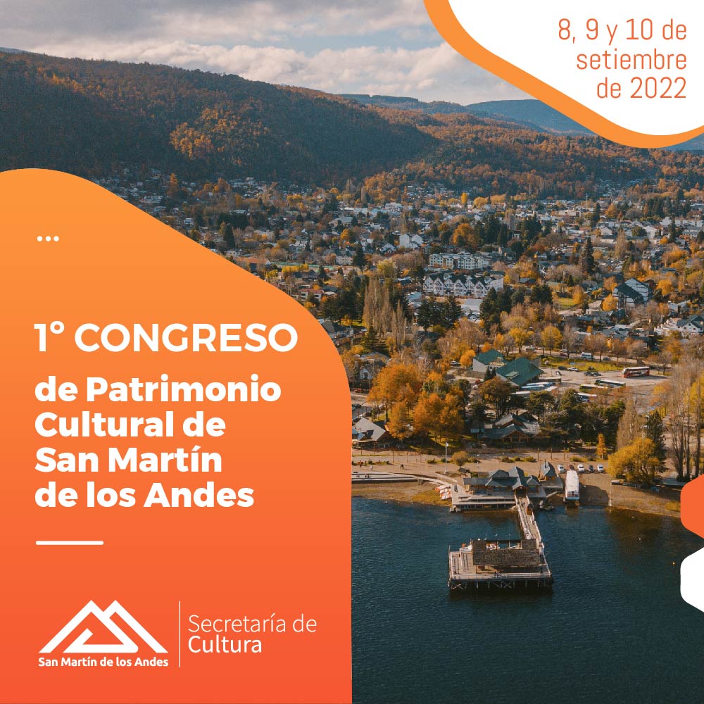 La Secretaría de Cultura y Educación, a través del Departamento de Patrimonio Histórico y Ciencias, invita a la comunidad a participar en la programación del 1º Congreso de Patrimonio Cultural de San Martín de los Andes, que se realizará el 8, 9 y 10 de setiembre de 2022, en esta ciudad.