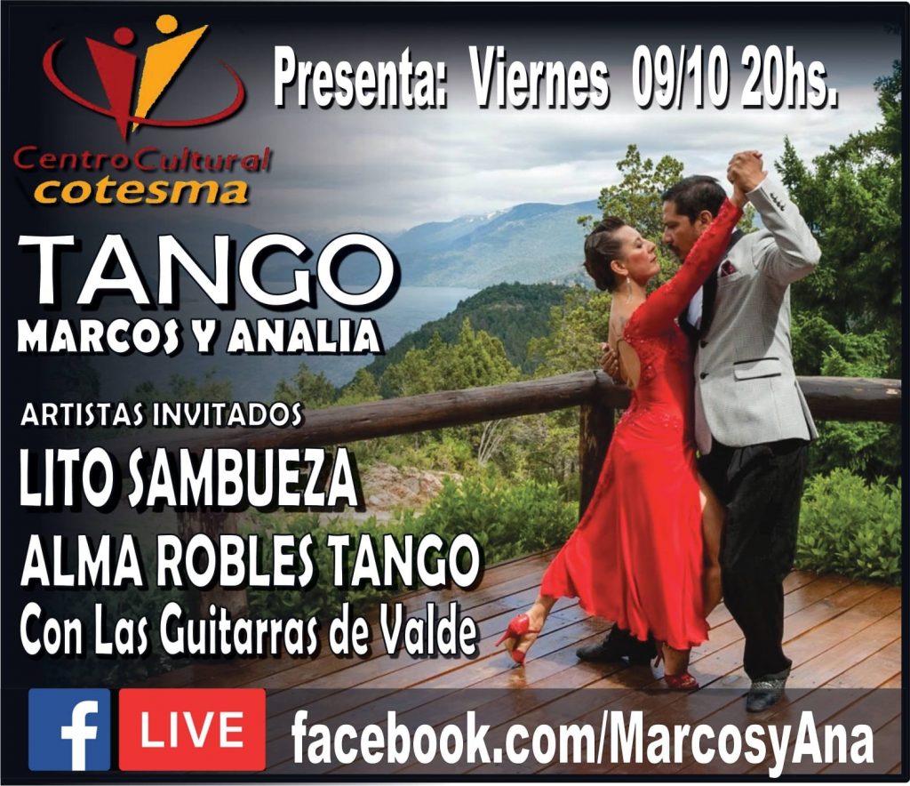 El próximo viernes, 09 de octubre a las 20hs, disfrutaremos la segunda presentación del Ciclo “Viernes Culturales en la Günther”. Llega “Noche de Tango” a Cargo de Marcos y Analia, Junto a Artistas Invitados: Lito Sambueza, Alma Robles Tango y las Guitarras de Valde.