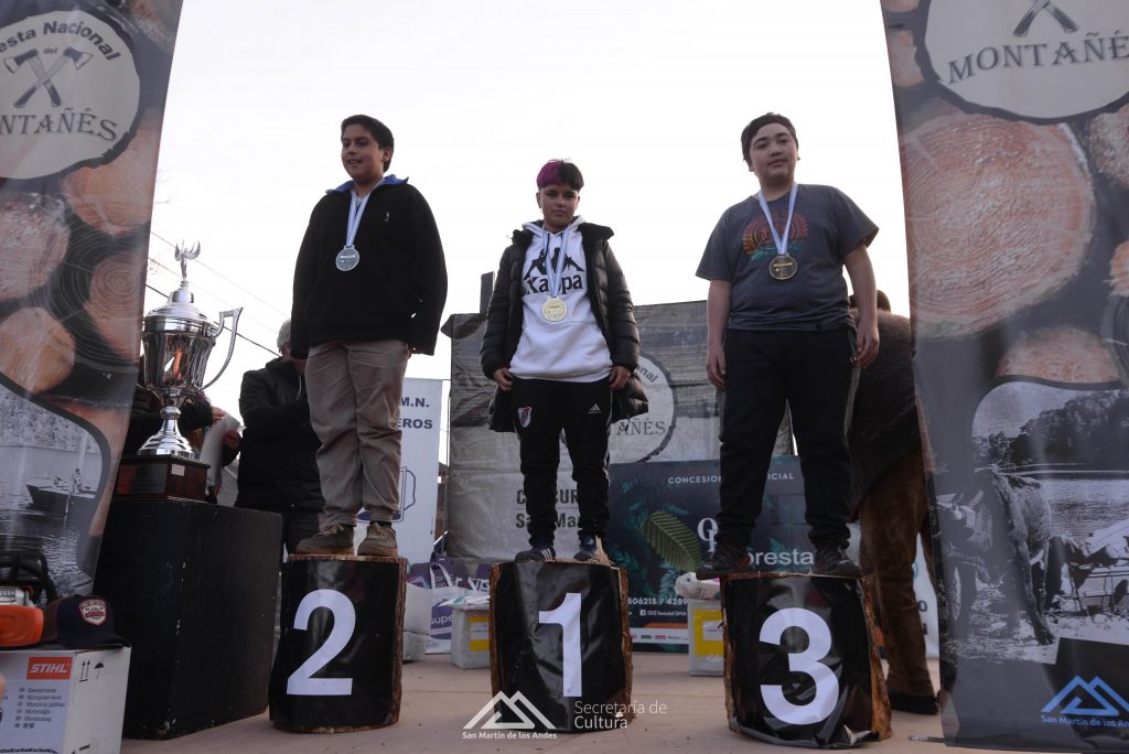 En la categoría “hacheritos” el triunfo fue para Tatiana Figueroa de 14 años, que partió un rollizo de 25 cm de diámetro en 6’04’’. El podio se completó con los sanmartinenses Josué Marko Curruhuinca, de Trompul (6’33’’) y Benjamín Godoy de Pil Pil (7’07’’).