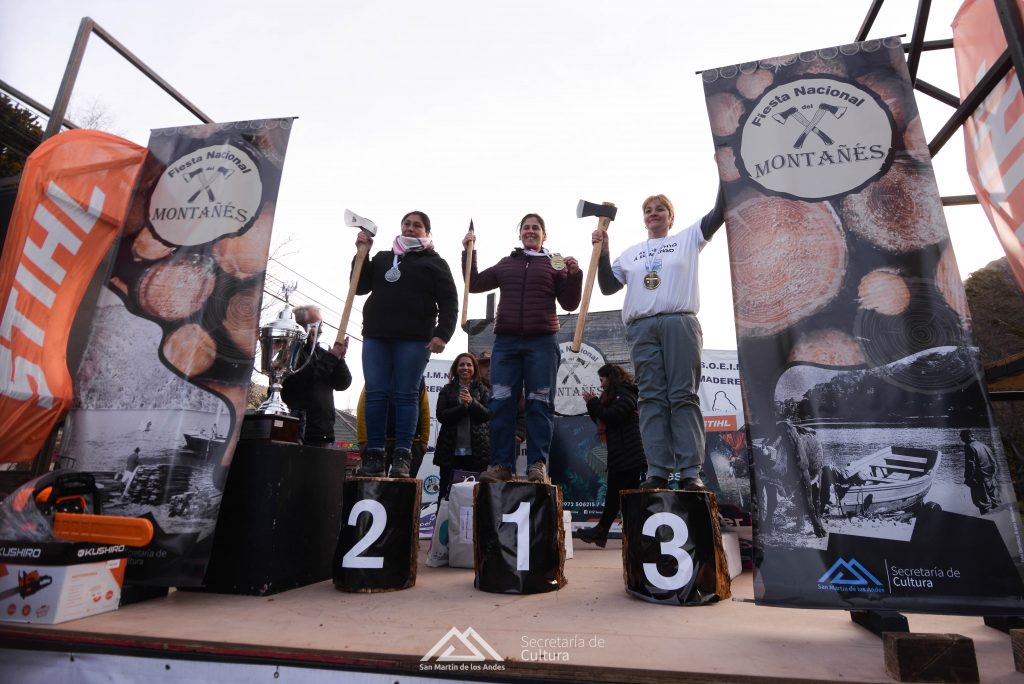 En la categoría “hacheras”, con rollizos de 25 cm de diámetro, la sanmartinense Rosa Valeska Monsalve obtuvo el primer lugar con un tiempo de 4’30’’. El segundo puesto fue para María Inés Bascuñán 5’26’’, también de San Martín de los Andes, y el tercero para Nancy Monsalve (5’29’’) de Bariloche.