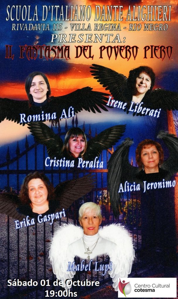El próximo sábado, 1° de octubre a las 19hs, en la Sala Amankay, volveremos a disfrutar una jornada de Teatro Italiano. Organizado por la Asociación Italiana de San Martín de los Andes, llega “IL FANTASMA DEL POVERO PIERO (El fantasma del pobre Piero)”, de la Scuola D’Italiano Dante Alighieri de Villa Regina.