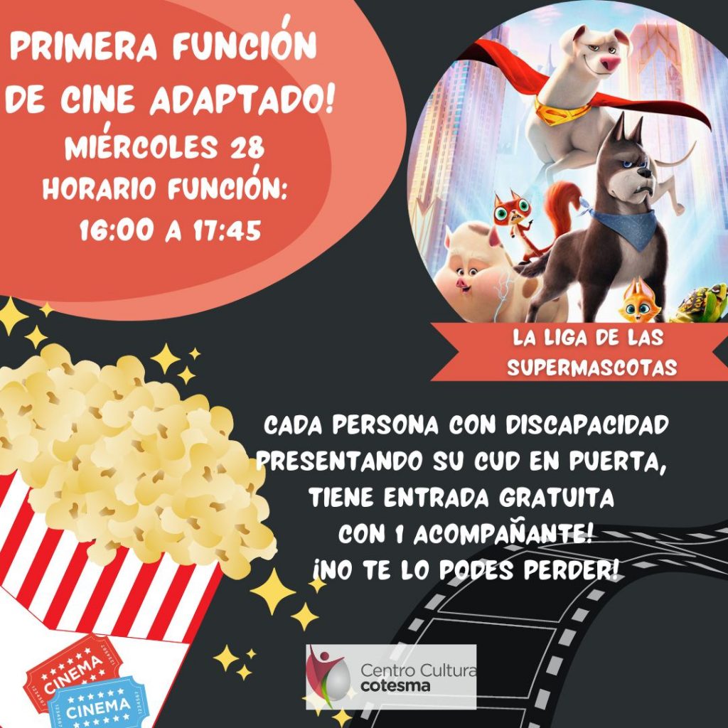Estimados, gusto en saludarlos, les escribo para contarles y a través suyo a toda la comunidad, que el próximo miércoles, 28 de septiembre a las 16hs, la proyección de “DC LIGA DE SUPERMASCOTAS”, será una proyección de Cine Adaptado, Inclusivo, de Puertas Abiertas.