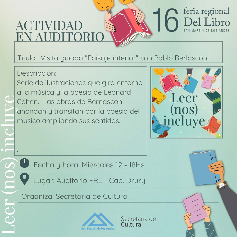 - 18 hs. Pablo Bernasconi. Visita guiada a la muestra ”Paisaje interior”. Organiza Secretaría de Cultura.