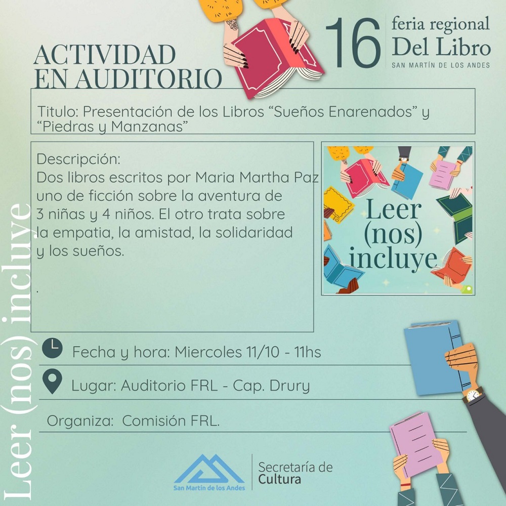 - 11 hs. María Martha Paz. Presentación de los libros ”Sueños enredados” y ”Piedras y manzanas”. Organiza Editorial La Punta del Ovillo.
