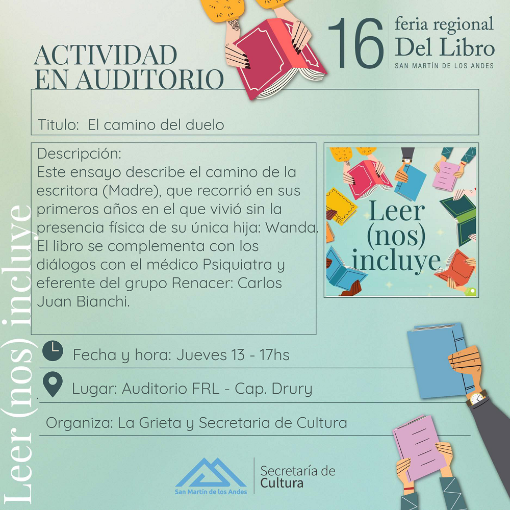 - 17 hs. Magalí Scida. Presentación del libro ”El Camino del duelo”. Organiza La Grieta y Secretaría de Cultura.