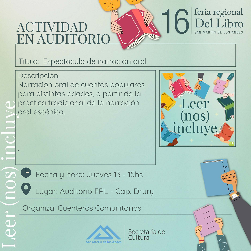 - 15 hs. Cuenteros Comunitarios. Narración oral de cuentos populares. Actividad para escuelas. Organiza Cuenteros Comunitarios.