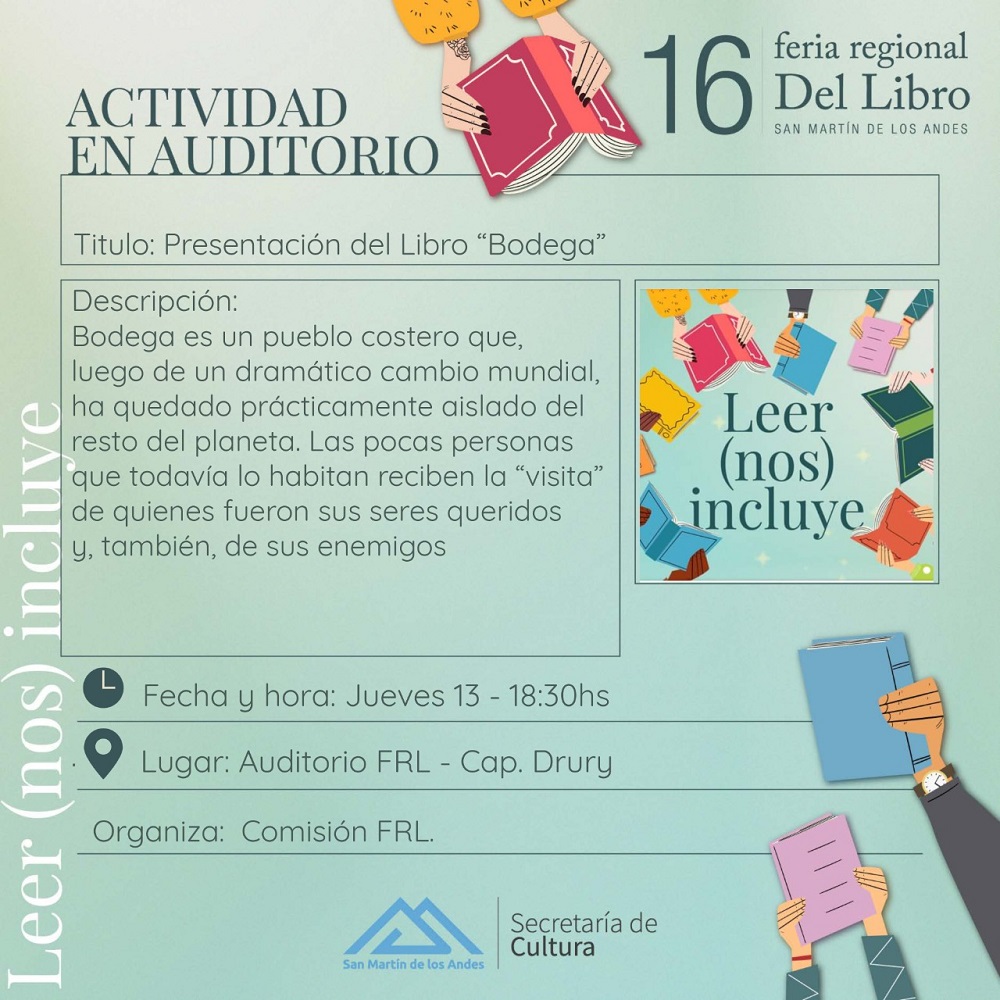 - 17:30 hs. Iván Nicola. Presentación de Políticas Públicas de lectura: Proyecto Patagonia Lee”. Organiza Centro de Documentación e Información Educativa de la provincia del Neuquén.
