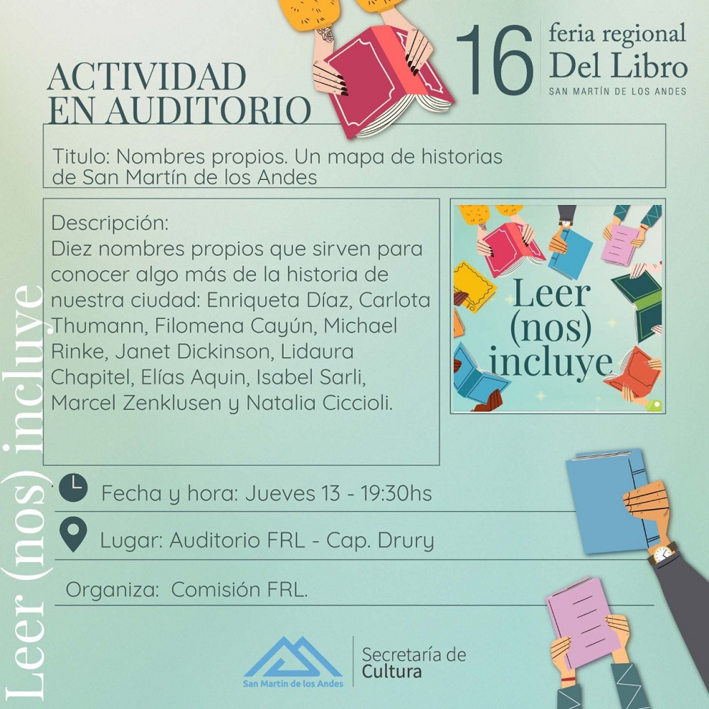 - 19:30 hs. Marcelo Gobbo. Presentación del libro ”Nombres propios: Un mapa de historias de San Martín de los Andes”.