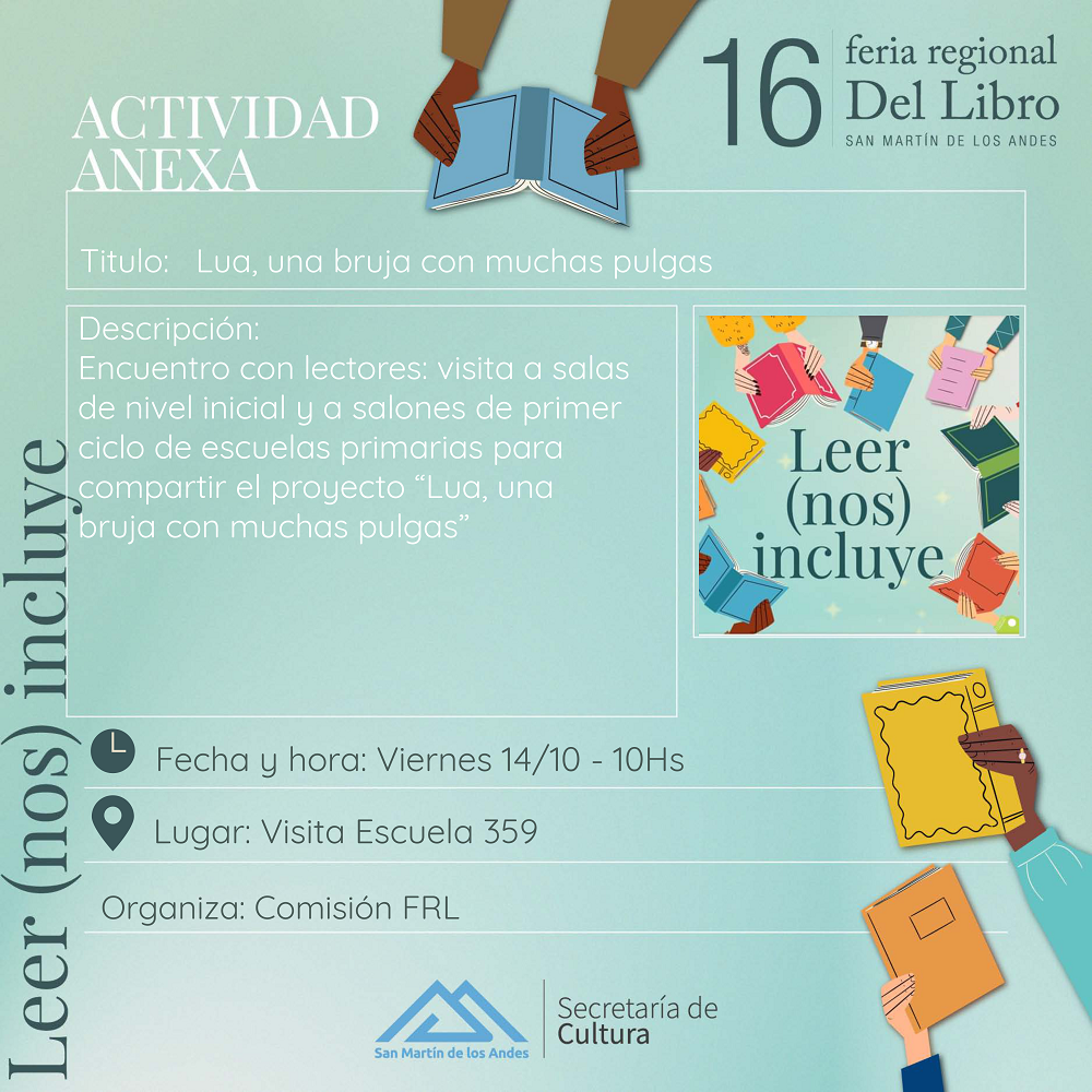 - Viernes 14 – 10 hs. Visita a la escuela. Mariana Rizzuto. Encuentro charla / taller ”Lua, una bruja con muchas pulgas”.