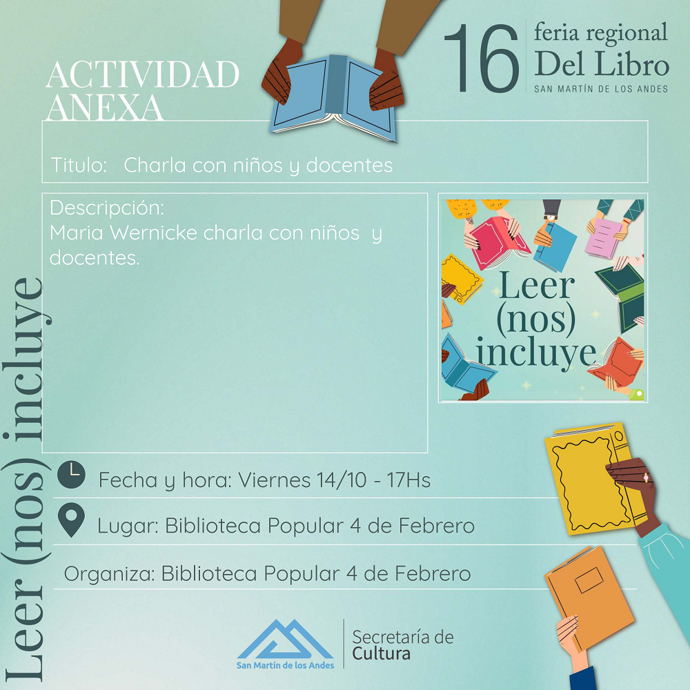 - Viernes 14 – 17 hs. Biblioteca Popular 4 de Febrero. María Wernicke. Charla con niños y docentes.