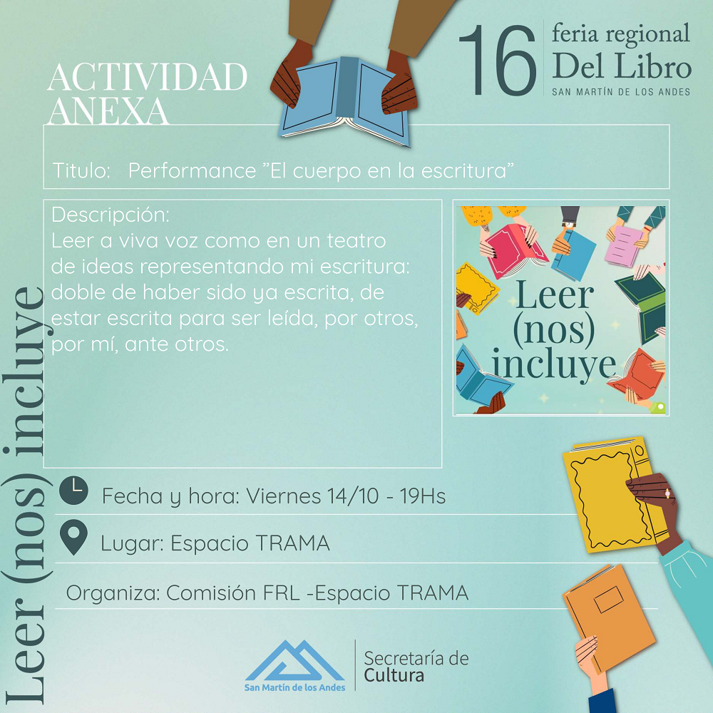 - Viernes 14 – 19 hs. Espacio Trama. Liliana Lukin. Performance ”El cuerpo en la escritura”.
