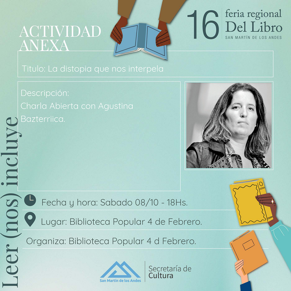 - Sábado 8 – 18 hs. Biblioteca Popular 4 de Febrero. Agustina Bazterrica. Charla ”La distopía que nos interpela.