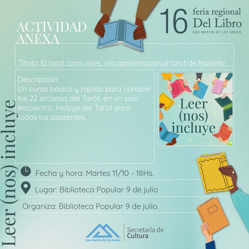 - Martes 11 – 18 hs. Biblioteca Popular 9 de julio. Dalia Walker. Taller ”El Tarot como llave, una aproximación al Tarot de Marsella’.