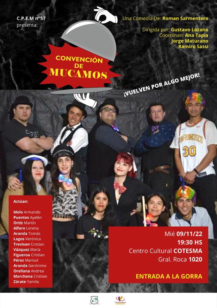 La noche comenzará con “Convención de Mucamos” protagonizada por alumnos de 3° B del CPEM N°57; le seguirá “Descontrol Hospitalario” realizada por estudiantes de 3° A del mismo colegio, quienes pedirán una colaboración a la gorra; y, como cierre del espectáculo, se estrenará “Casamiento siglo XXI” con la participación estelar de alumnos de 3° C del CPEM N°13.