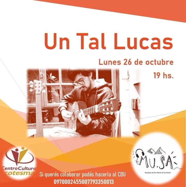 El próximo lunes, 26 de octubre, continuando con el Ciclo “Mu.Sa.”, llega la presentación de “UN TAL LUCAS”.