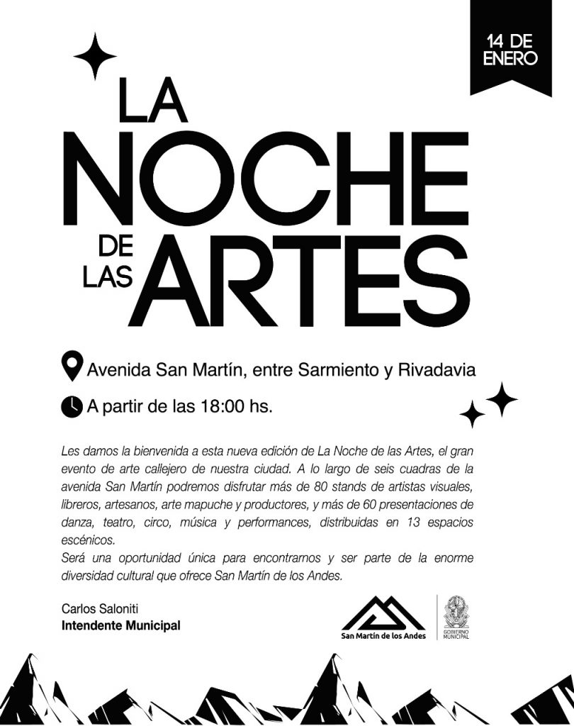 Este sábado 14 de enero, desde las 18 y hasta las 00 hs., la Avenida San Martín volverá a convertirse en una gran peatonal de arte y cultura, para el disfrute de todas las vecinas, vecinos y visitantes.