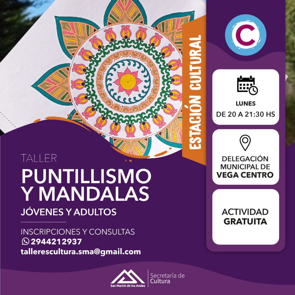 - Puntillismo y mándalas, para jóvenes y adultos, lunes de 20:00 a 21:30 hs, en la Estación Cultural de Vega Centro.