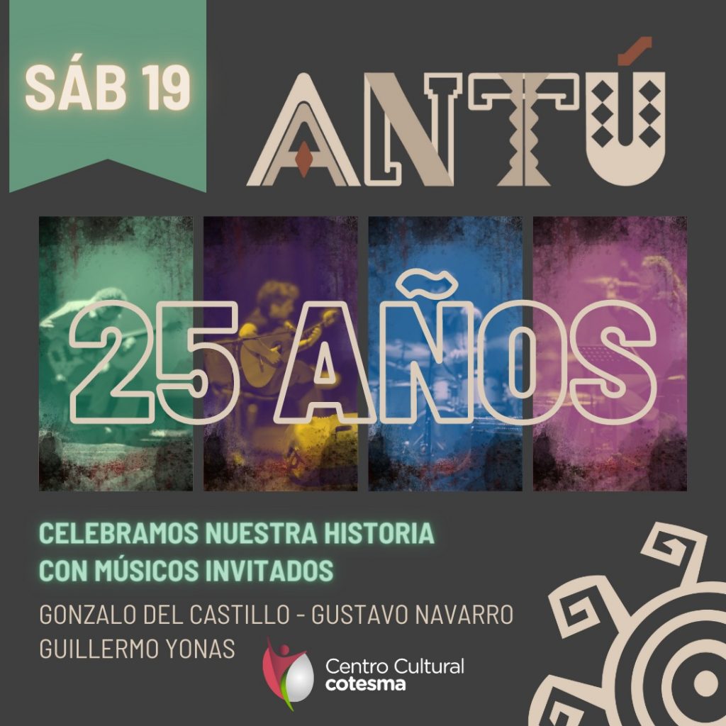 El próximo sábado, 19 de agosto a las 21.30hs, en nuestra querida Sala Amankay, celebramos junto a “ANTÚ”, los 25 años de la banda local.