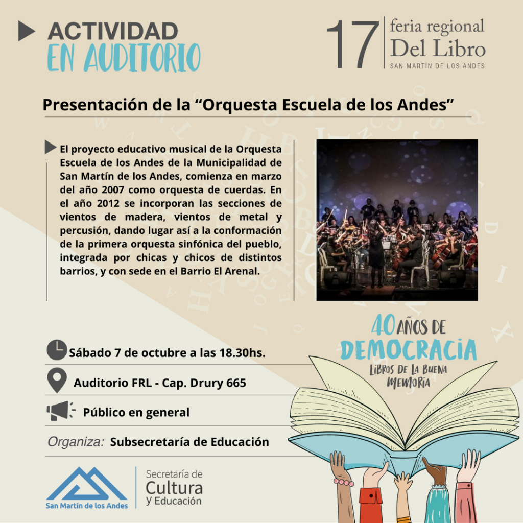18:30 hs. Presentación de la “Orquesta Escuela de los Andes”. Organiza: Subsecretaría de Educación.