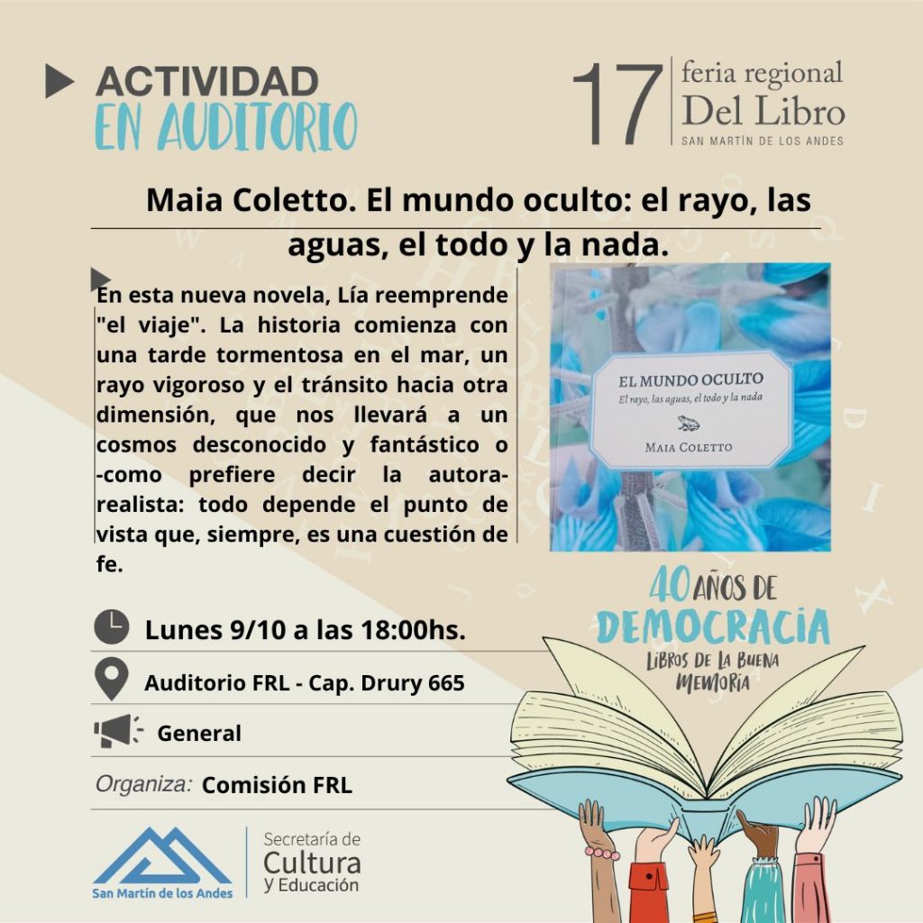 18:00 hs. Maia Coletto. Presentación del libro “El mundo oculto: el rayo, las aguas, el todo y la nada”.