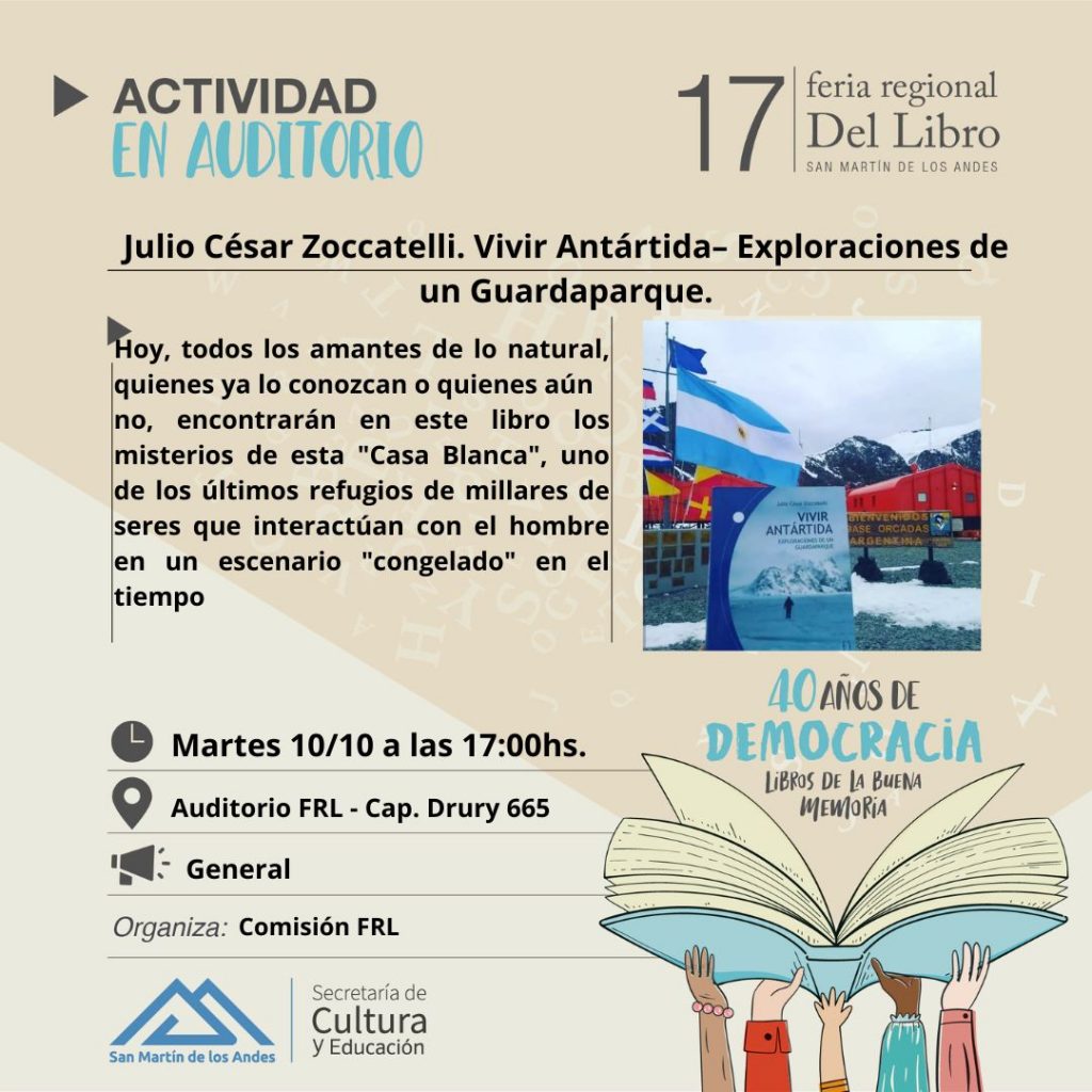 17:00 hs. Julio César Zoccatelli. Presentación del libro “Vivir Antártida”.