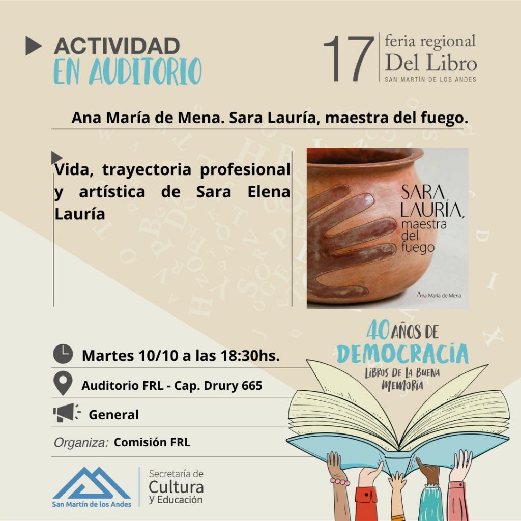 18:30 hs. Ana María de Mena. Presentación del libro “Sara Lauría, maestra del fuego”.