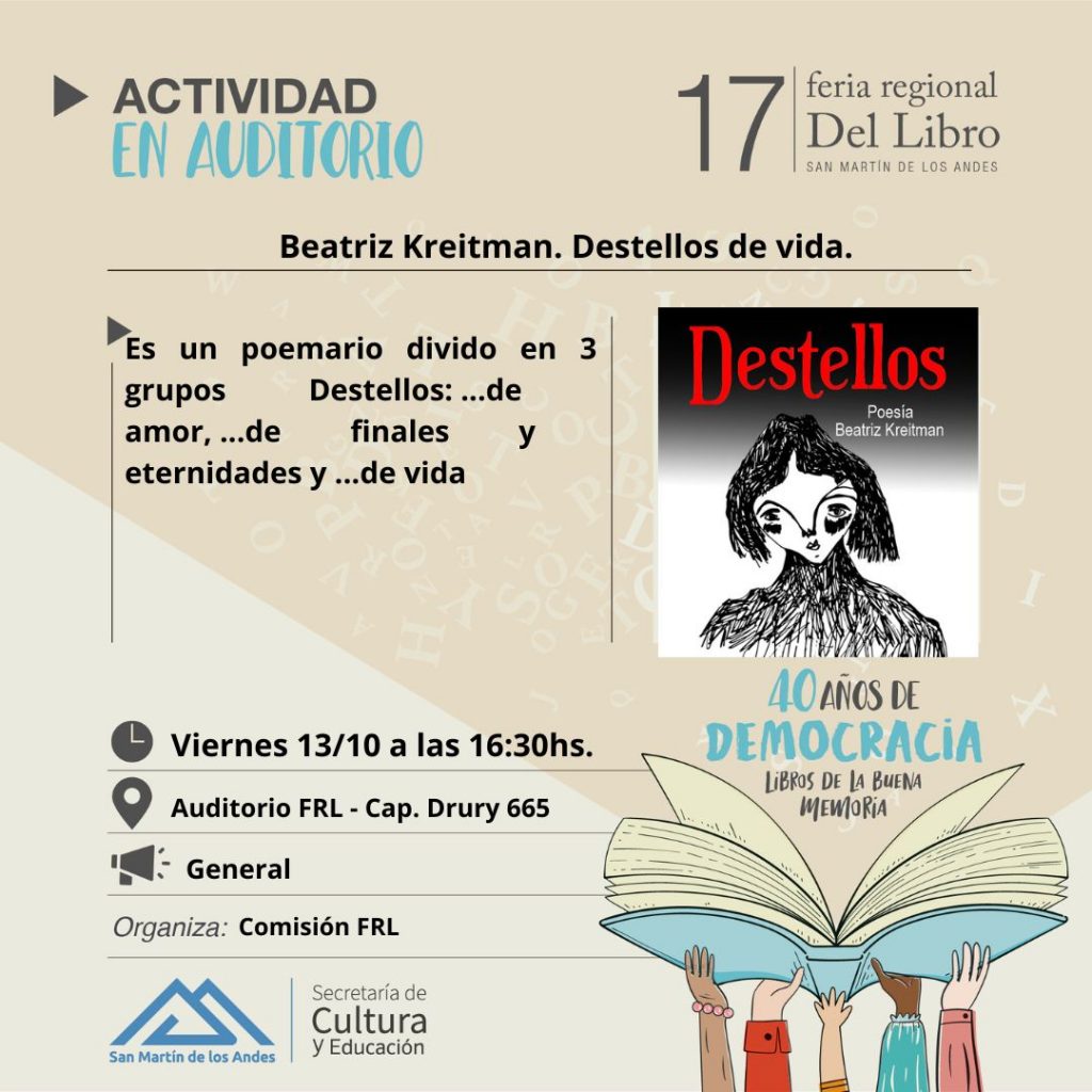 16:30 hs. Beatriz Kreitman. Presentación del libro “Destellos de vida”.
